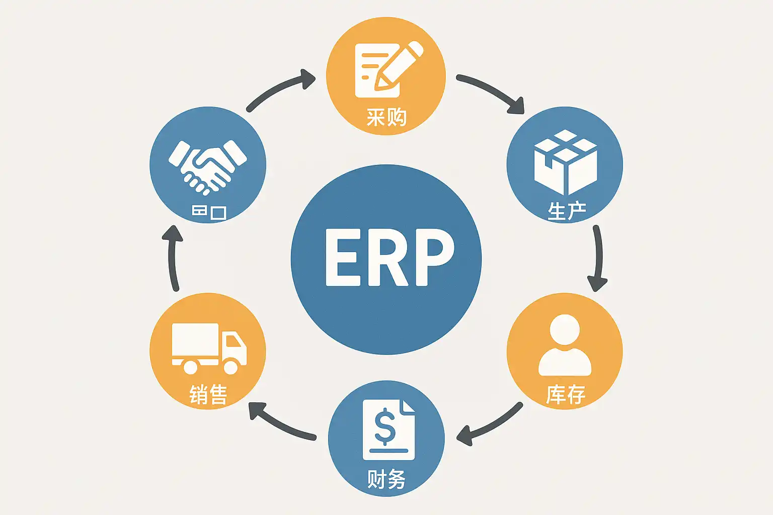ERP(Enterprise Resource Planning,企业资源计划)系统通过集成企业各项业务流程,将信息流、物流和资金流统一起来,实现资源的高效配置。其主要经营环节涵盖了企业从原材料采购到产品销售全过程,是现代企业运营不可或缺的信息化支撑平台。