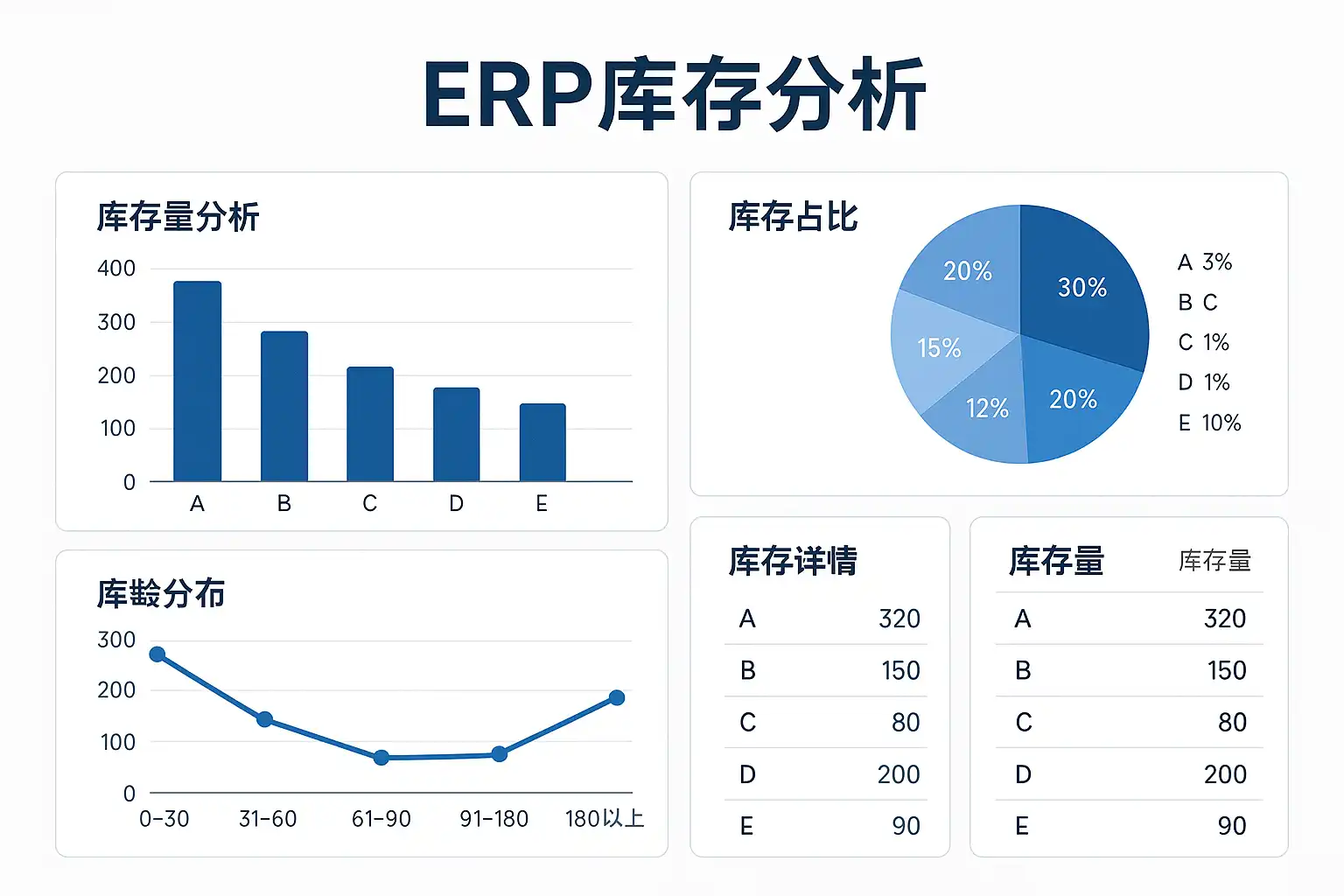 ERP库存分析是利用企业资源计划(ERP)系统对库存数据进行系统化、结构化的分析。通过实时监控库存水平、周转率和需求预测,帮助企业优化库存结构,减少资金占用。根据2023年行业报告,实施ERP库存分析的企业平均库存周转率提升了20%,有效降低了15%的库存积压风险。