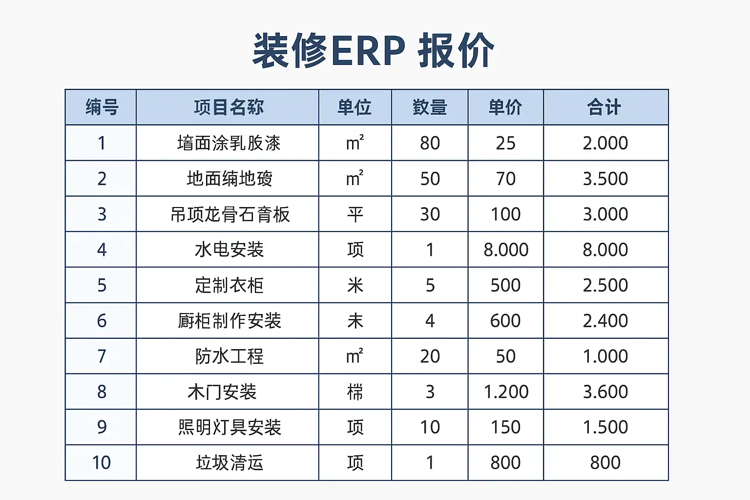 《装修erp报价》