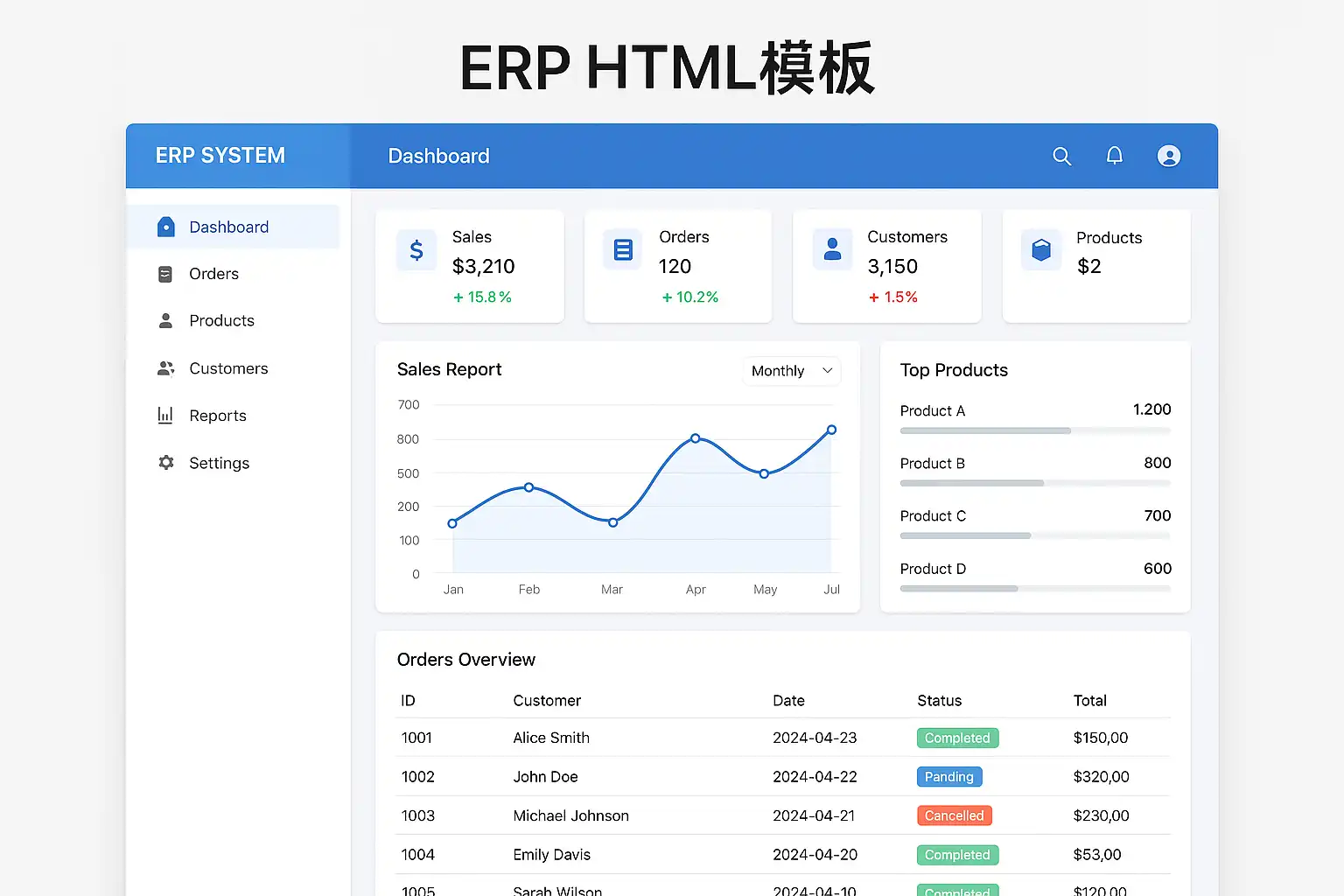 市面上常见的ERP HTML模板类型主要有以下几种: