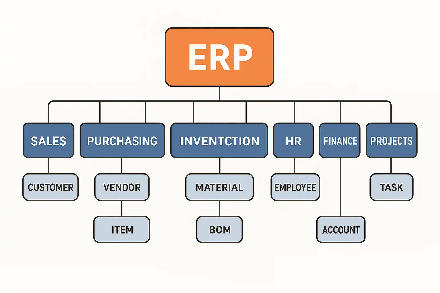 | 主数据 | 客户、供应商、物料(商品)、员工等基础信息 | 客户档案维护,产品目录 |