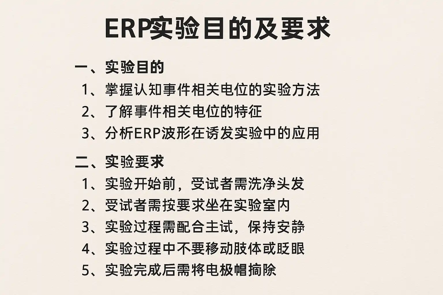 进行ERP实验需要满足以下基本要求: