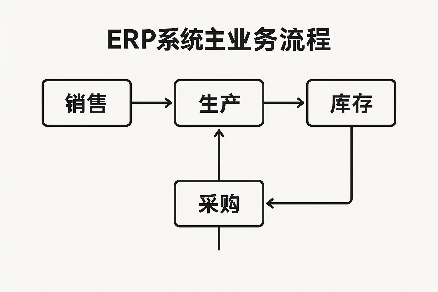 | 采购管理 | 请购、审批、询价比价、下单、收货入库 | 保证原材料供应,控制采购成本 |