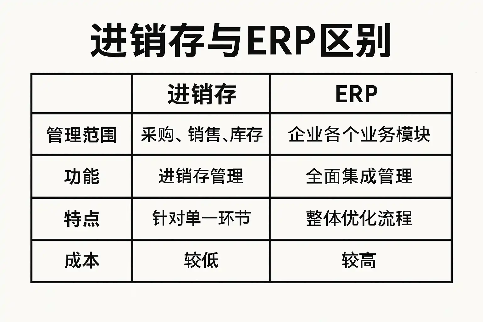 我在学习企业管理系统的时候,常听到进销存和ERP这两个概念,但它们具体有什么区别呢?它们的功能和应用场景是不是完全不同?