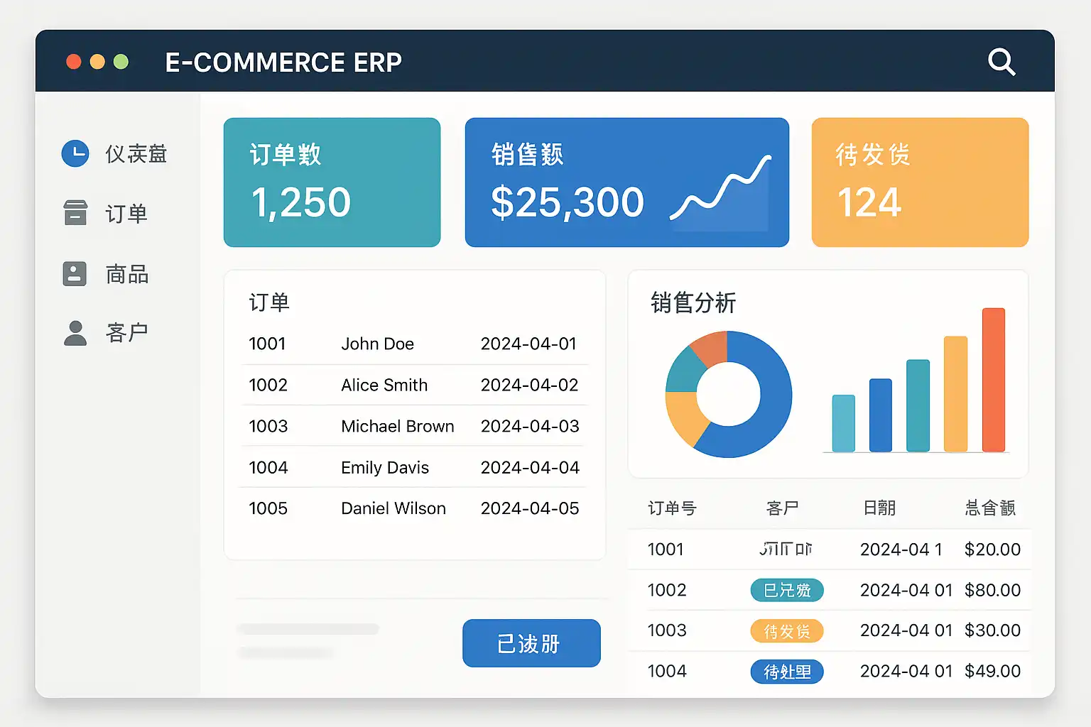 电子商务ERP管理软件主要包括以下核心功能: