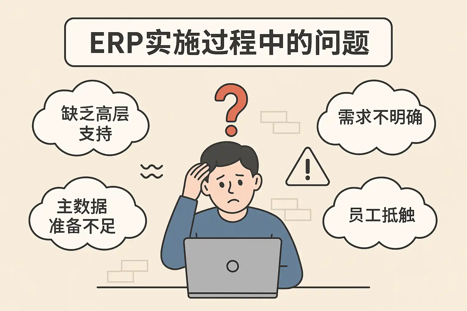 我最近在了解ERP系统的实施,听说过程中会遇到很多问题。能详细说说ERP实施中最常见的问题有哪些吗?我想提前做好准备,避免踩坑。