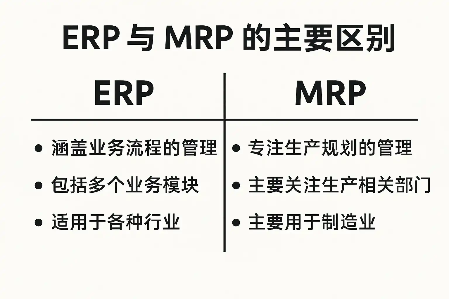 | 维度 | MRPs适用情况 | ERP适用情况 |