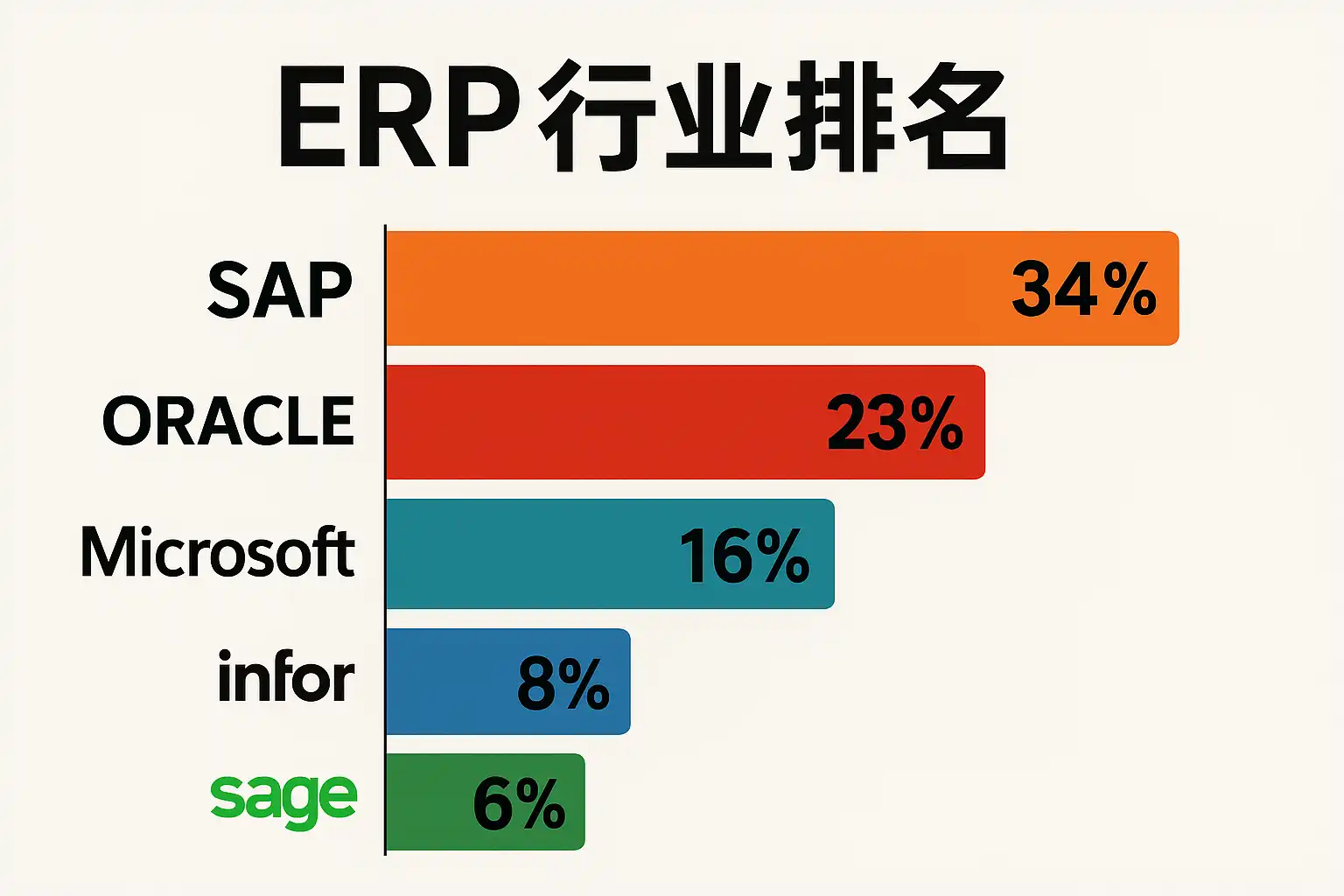 | 1 | SAP | SAP S/4HANA | 大中型企业 | 行业方案丰富,国际化程度高 |