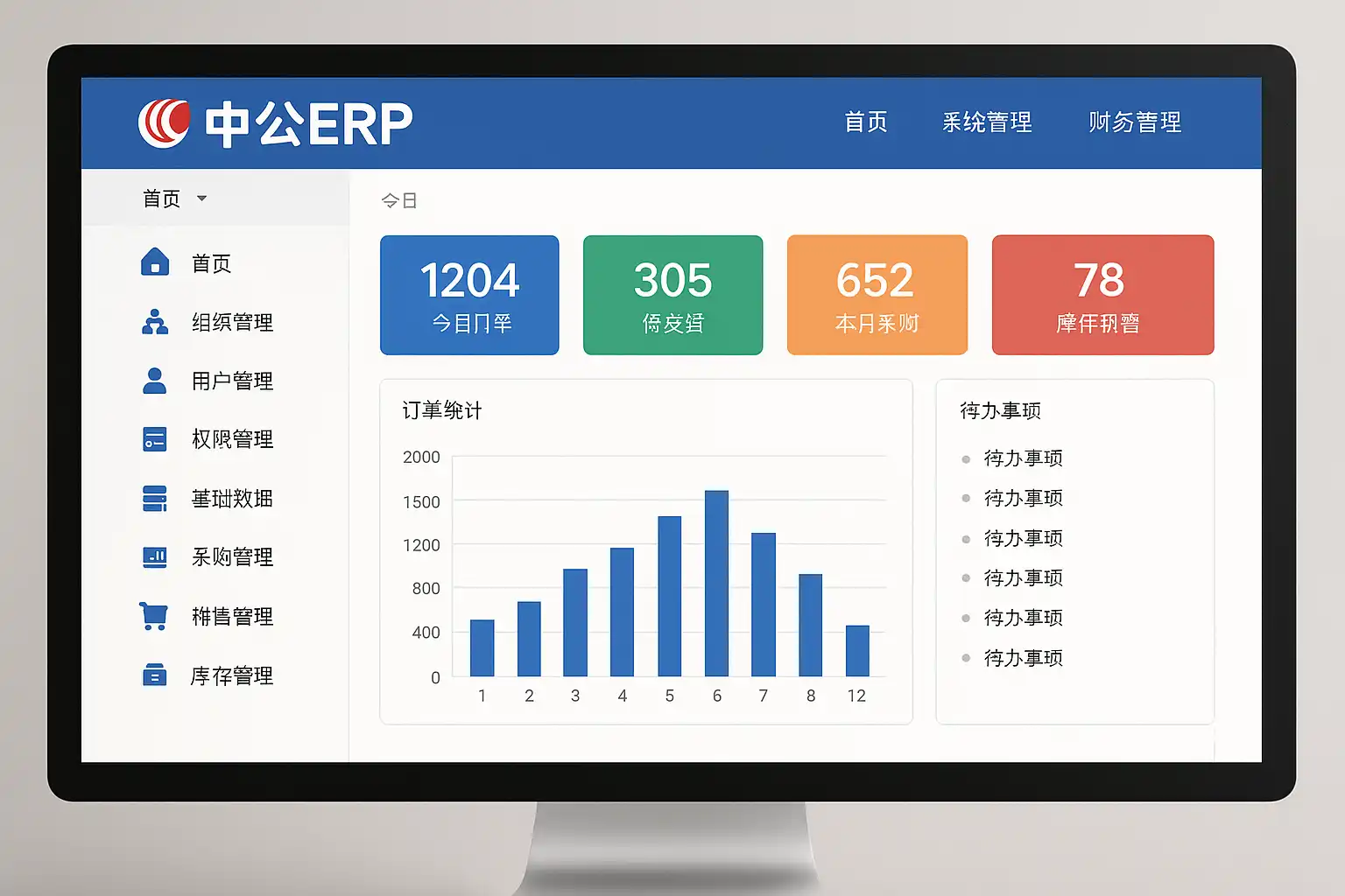 中公ERP系统主要涵盖以下核心功能模块: