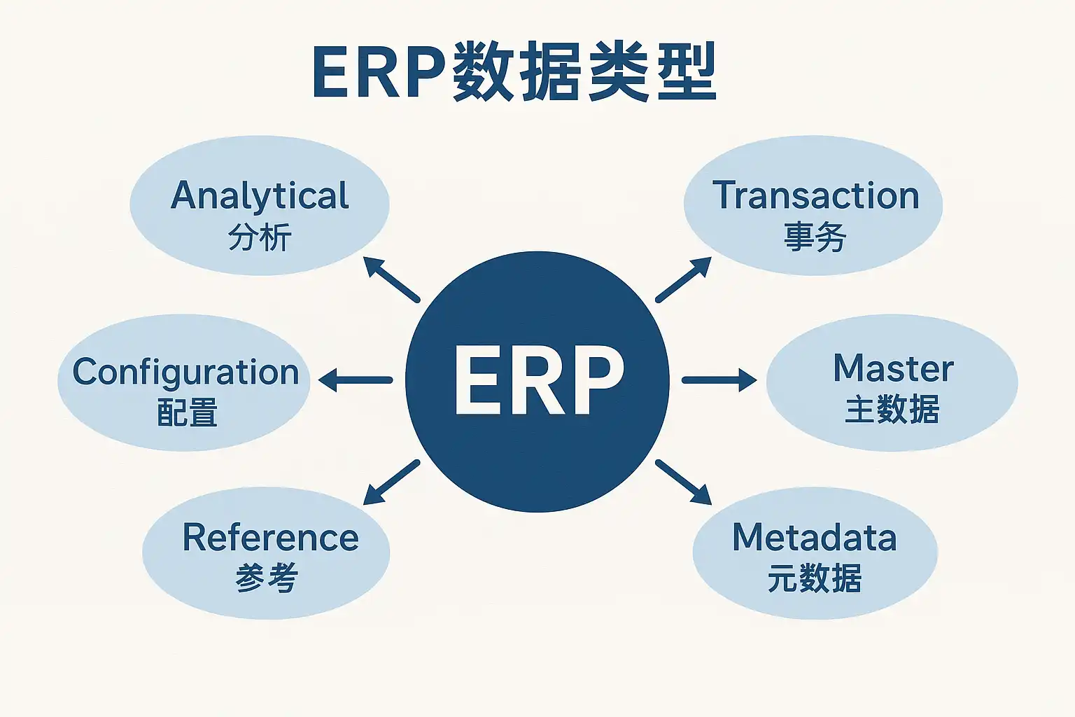 我在学习ERP系统时,发现涉及到很多不同的数据类型,但具体都有哪些呢?我想了解ERP系统中常见的数据类型分类及其作用,能否帮我详细说明一下?
