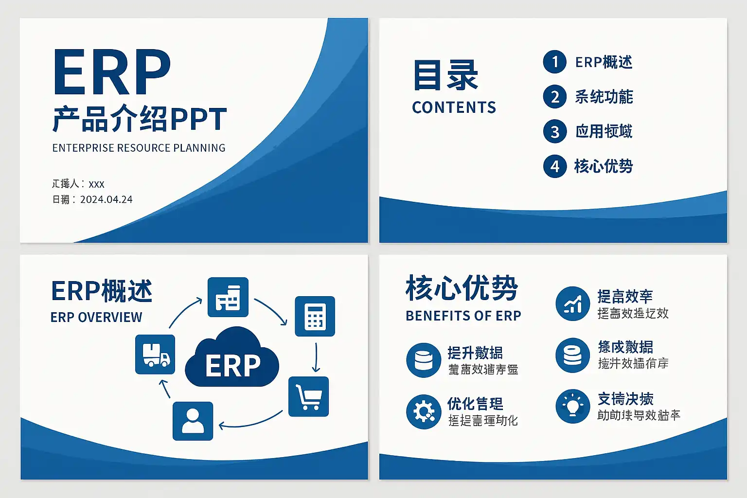 制作一份高质量的ERP产品介绍PPT,需要遵循科学合理的内容结构。通常建议采用以下章节划分: