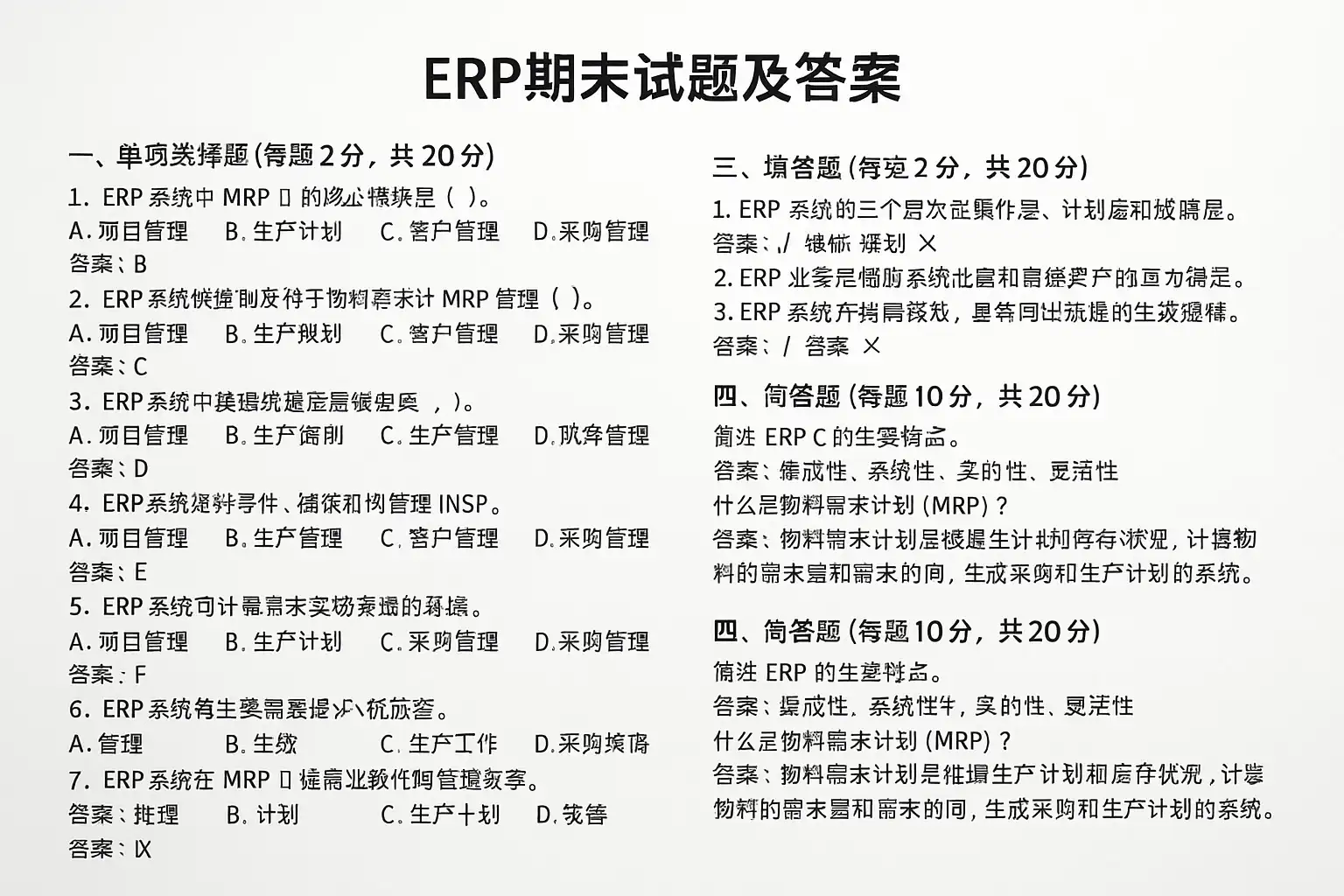 推荐以下权威资源获取详细的ERP期末试题及答案: