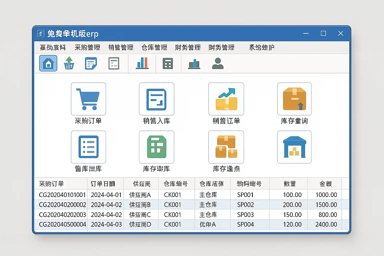 免费单机版ERP通常涵盖以下核心功能: