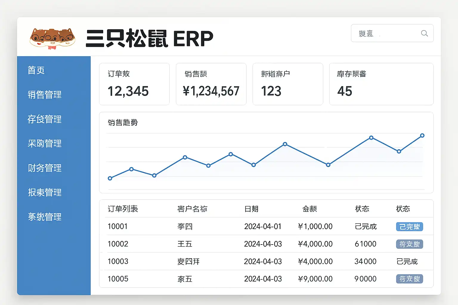 三只松鼠ERP系统主要涵盖以下核心功能: