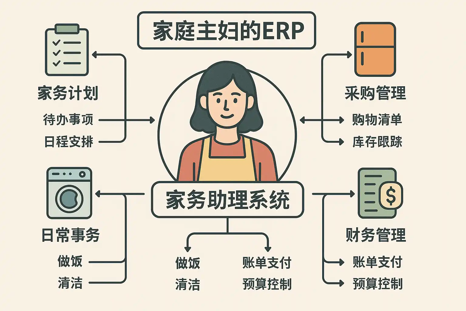 作为一个家庭主妇,我想知道使用ERP系统到底能给我带来什么具体的好处?我平时管理家务和家庭预算,听说ERP可以帮助提升效率,但具体优势是什么?