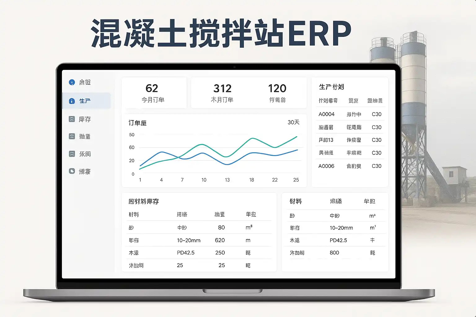 随着建筑行业对信息化管理需求的提升,传统手工管理方式难以满足现代混凝土搅拌站对高效协同、精准管控的要求。ERP(Enterprise Resource Planning,企业资源计划)应运而生,它将生产、采购、销售、人力资源等业务流程集成到统一的信息平台,实现数据共享和流程透明。