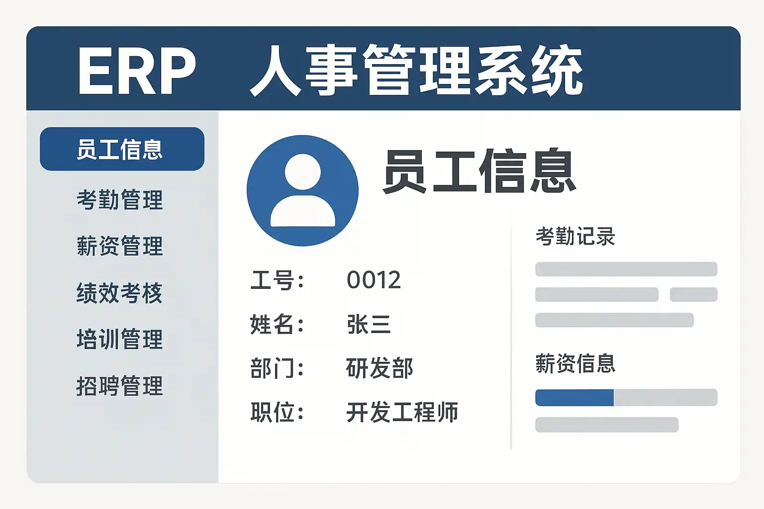 ERP(Enterprise Resource Planning,企业资源计划)是一种集成信息系统,旨在帮助组织整合包括财务、供应链、生产制造、人力资源等在内的核心业务流程。其中,人事管理模块则聚焦于员工相关事务的全面数字化和自动化,包括员工档案、招聘录用、考勤休假、绩效考核、薪酬福利等。