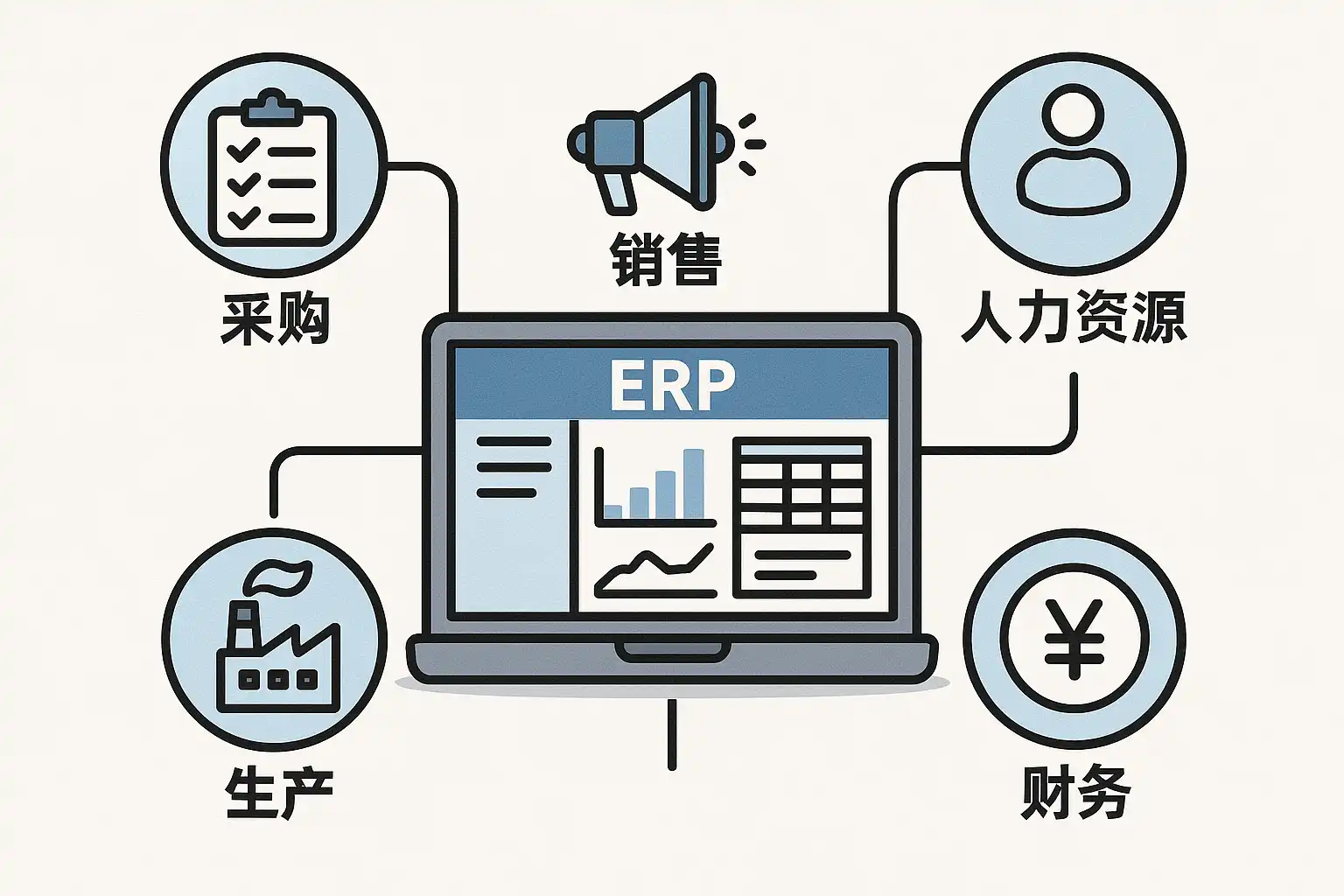 ERP(Enterprise Resource Planning,企业资源计划)是集成企业内部所有资源(如财务、人力、生产、供应链等)的综合性管理软件。它能够将采购、库存、销售、财务等核心业务数据统一到一个平台,有效提升协同效率和决策能力。