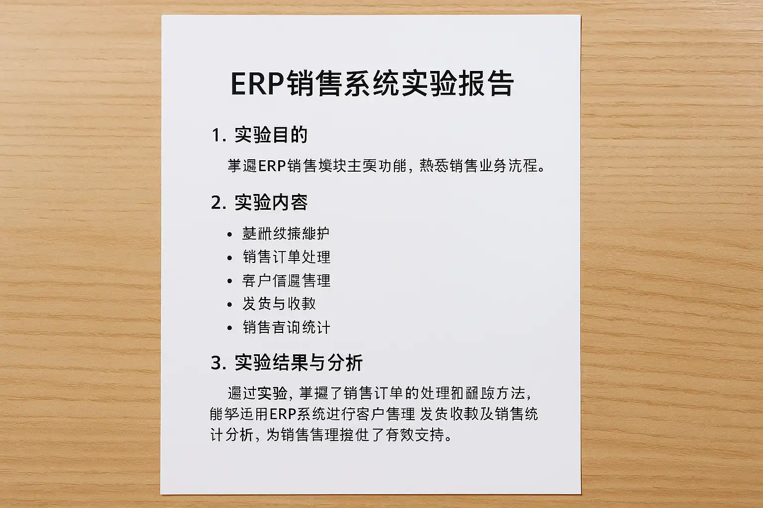 实验报告中如何结构化展示ERP销售系统实验结果?