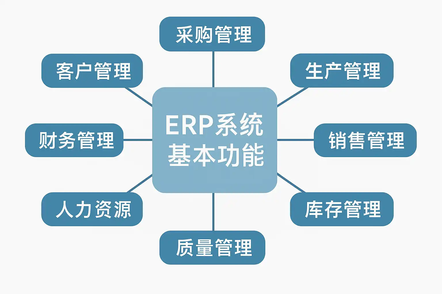 我最近开始接触ERP系统,想了解它的基本功能都涵盖哪些模块?不同模块之间有什么联系?