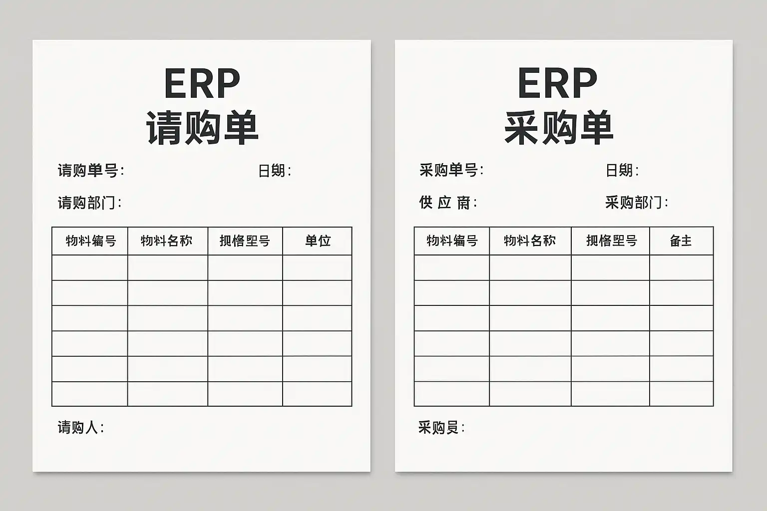 总结:请购单关注“我要什么”,而采购单关注“买了什么”——两者是企业物资管理中的上下游环节,相辅相成,不可混淆。