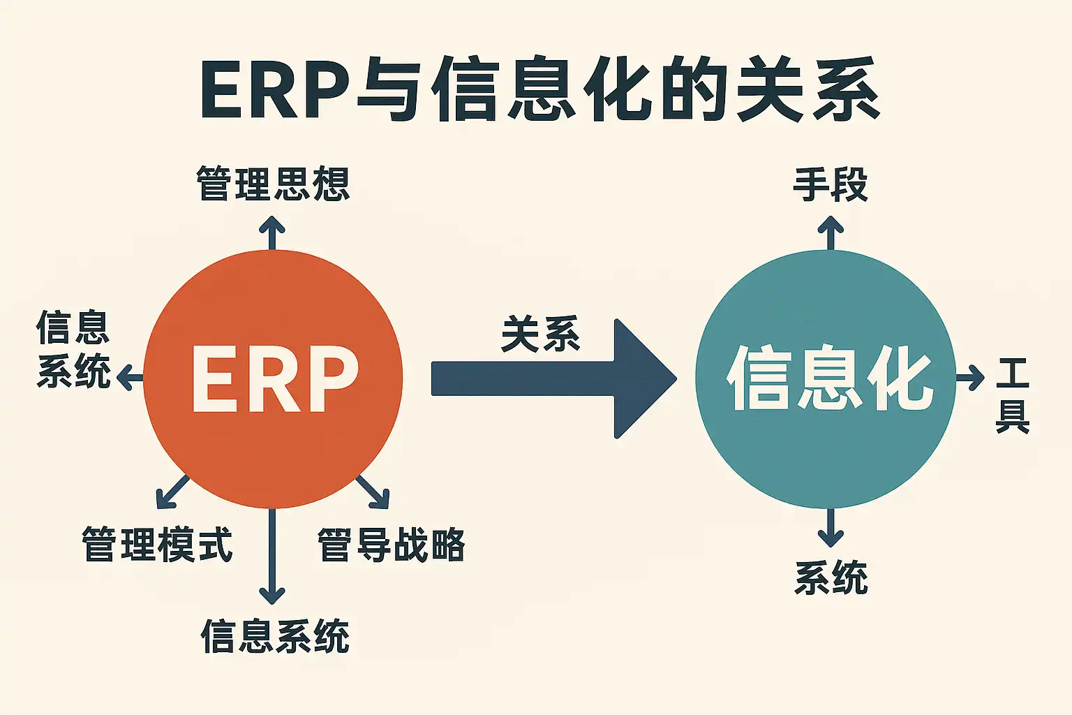 作为一个企业管理者,我经常听到ERP和信息化这两个词,但我不太清楚它们之间具体有什么联系。ERP是信息化的一部分吗?它们各自的作用分别是什么?