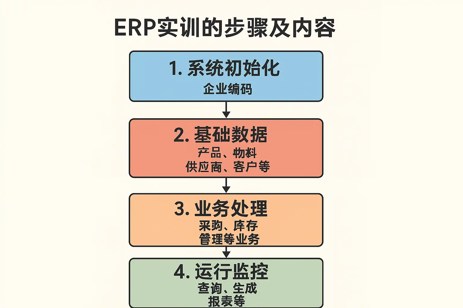 我刚开始接触ERP实训,想知道整个实训过程一般包括哪些关键步骤?了解这些步骤能帮我更好地规划学习时间和内容。