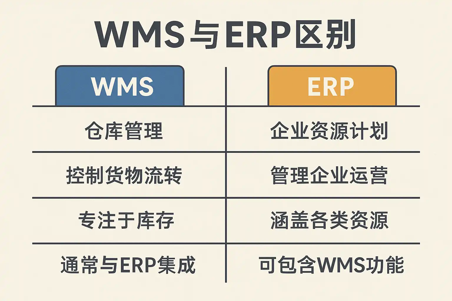 我一直在考虑企业管理系统,听说WMS和ERP都很重要,但它们到底有什么不同?我需要了解它们的核心区别,才能决定企业应该优先投资哪个系统。