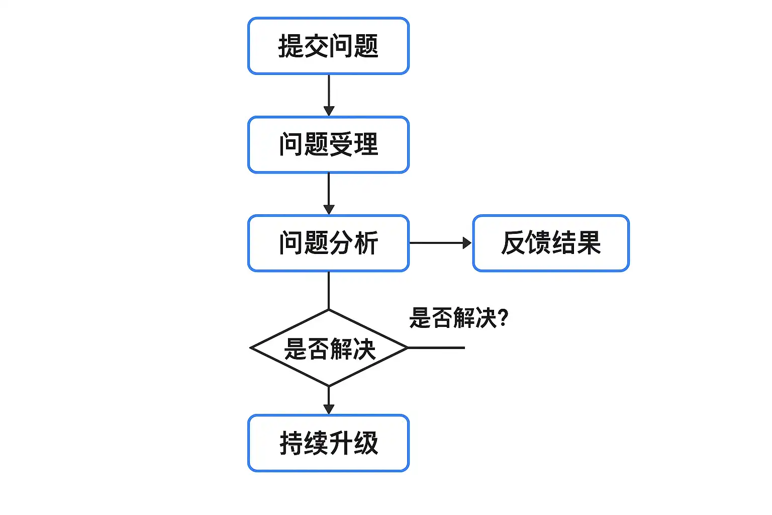 处理流程一般包括:问题受理→初步判断→分派责任人→协同解决→回归测试→总结归档。对于重大或重复性问题,还需复盘原因,并制定防范措施纳入知识库。