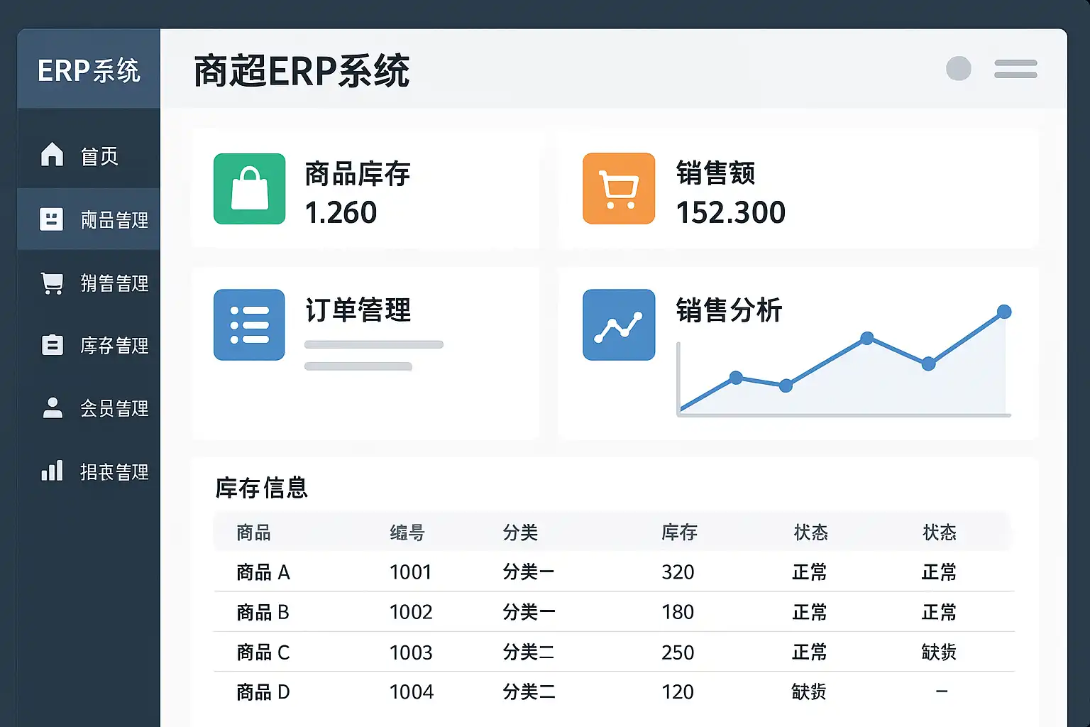 商超ERP定义与核心功能 商超ERP(Enterprise Resource Planning)系统是专为零售行业、尤其是大型及连锁超市量身定制的信息化管理平台。它以商品流通为主线,将采购、仓储、销售、会员管理、人力资源及财务核算等业务流程整合在一起,实现信息共享与业务协同。