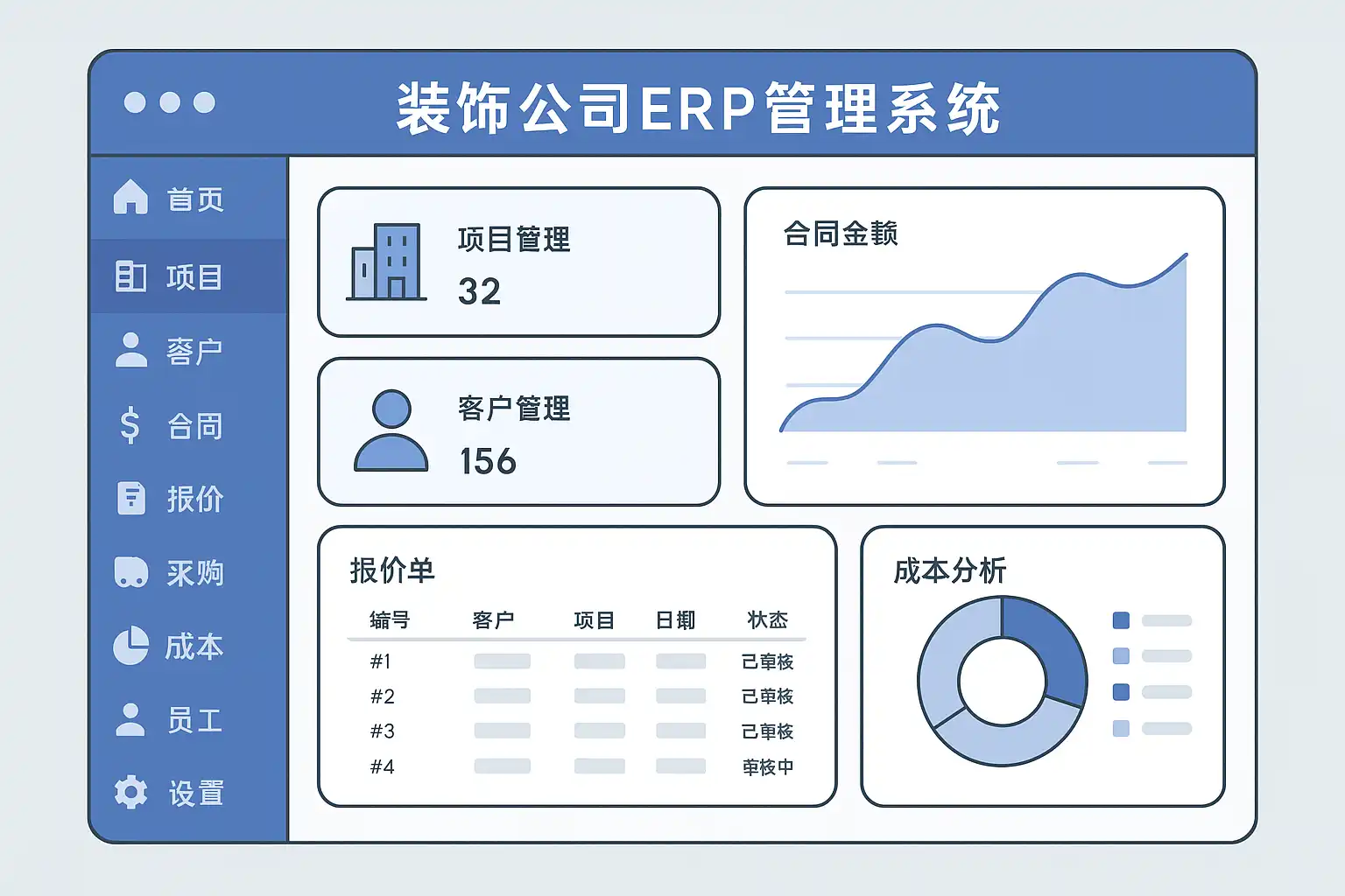 成本控制历来是装饰公司的难点。ERP系统通过以下措施强化财务健康: