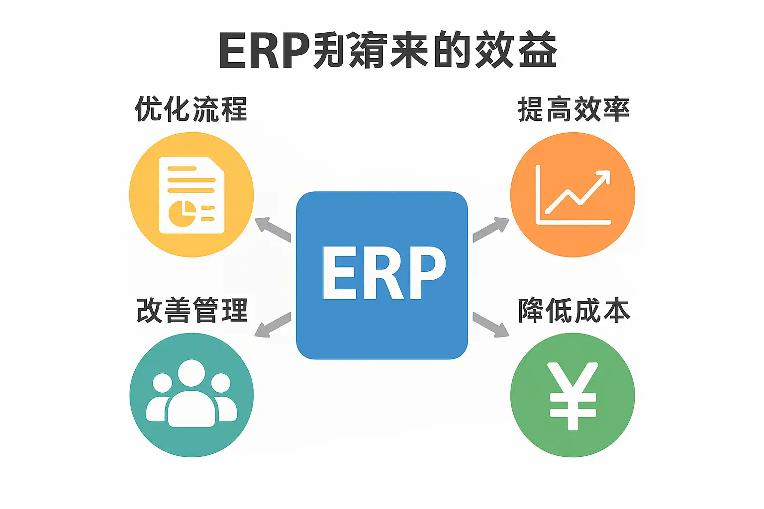 ERP(企业资源计划)系统是一套集成的信息管理平台,将企业各项资源(如人力、财务、供应链等)进行统一规划与协同管理。其主要带来的效益体现在以下五个方面: