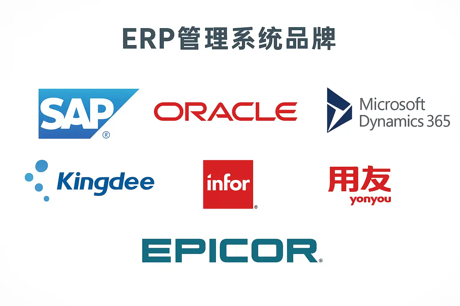 目前市场上较为知名的ERP管理系统品牌包括: