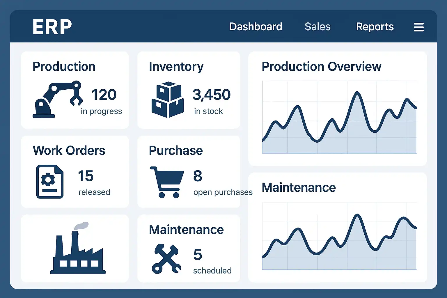 一般工厂常用的ERP(企业资源计划)系统,主要解决生产流程、物料管理、库存控制、财务核算等一体化管理问题。**1、提升生产效率;2、优化库存与采购管理;3、实现数据透明化和决策支持;4、加强财务与成本管控。**其中,“提升生产效率”尤为关键。例如,通过ERP系统自动化订单排产和资源分配,能极大减少人工干预与沟通失误,从而缩短生产周期,提高设备利用率,并支持按需制造,减少浪费。这对于现代制造业在激烈市场竞争中保持高效运作和敏捷响应起到了决定性作用。