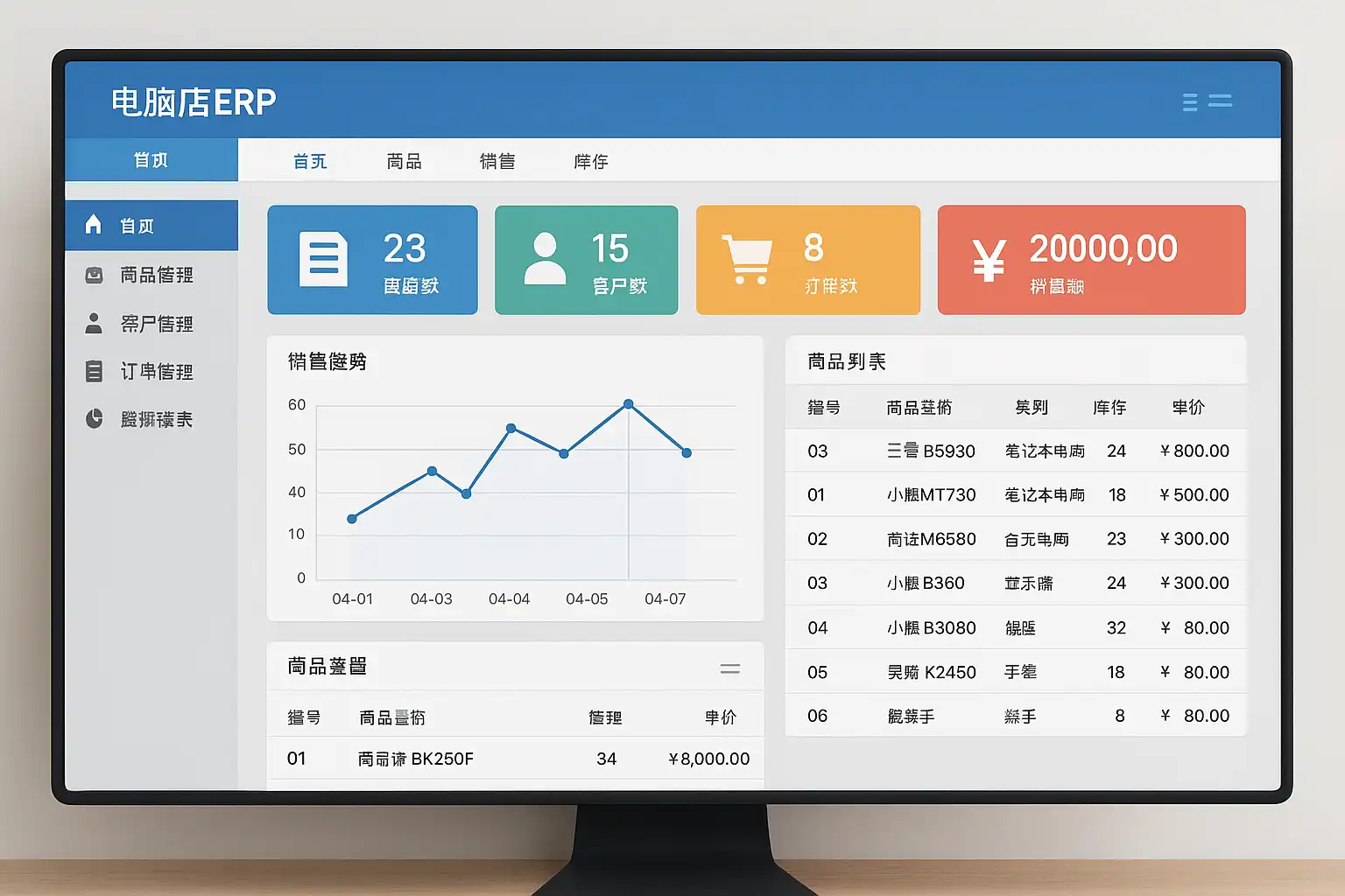 ERP(Enterprise Resource Planning,企业资源计划)是一类实现企业资源整合和业务流程自动化的信息管理系统。针对电脑零售及维修行业的特点,专用的电脑店ERP结合了硬件销售、配件管理、客户服务和财务对账等核心需求。