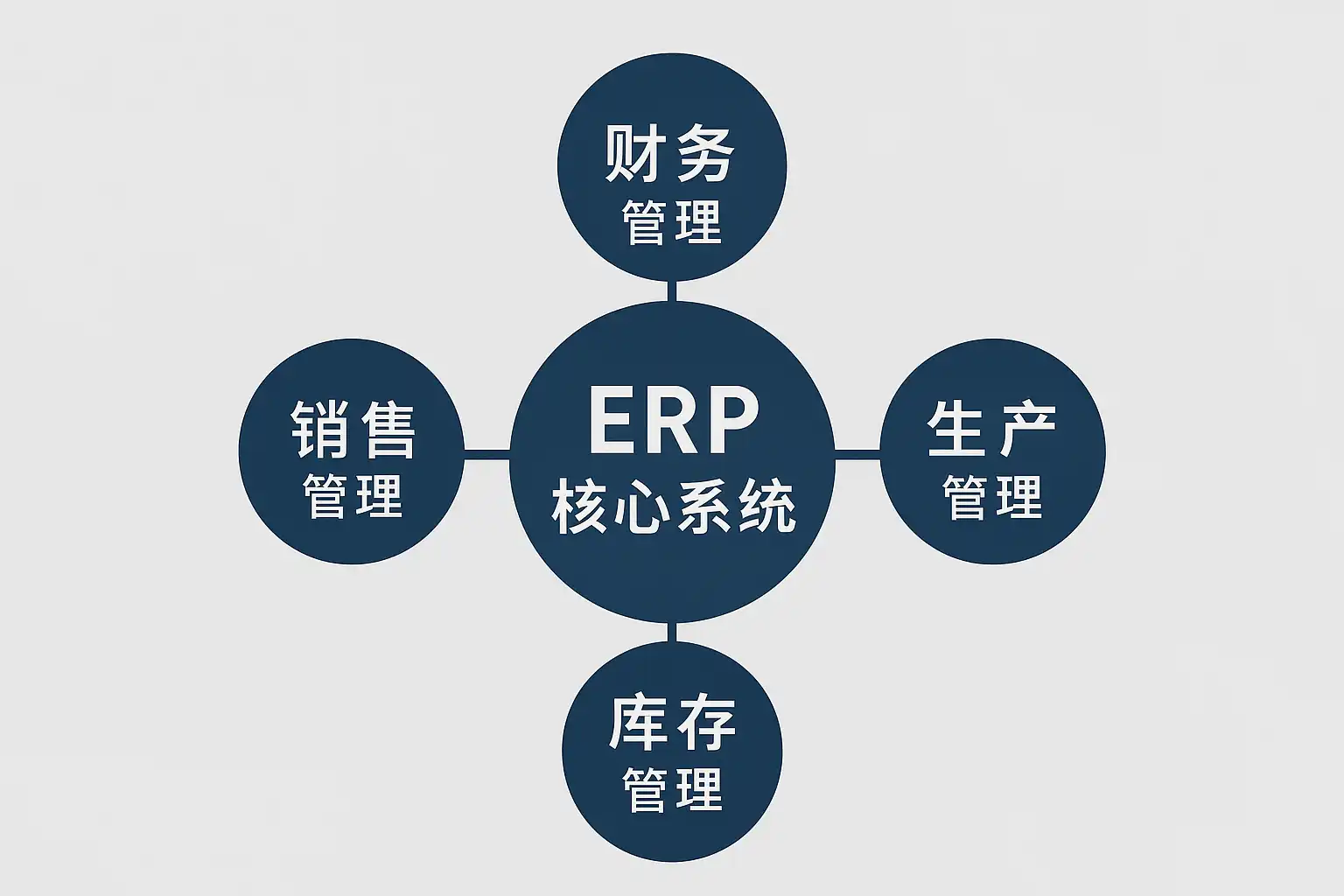 ERP(Enterprise Resource Planning,企业资源计划)是指以信息技术为基础,实现对企业内外部资源集成化管理的信息系统。一个完整的ERP核心系统通常包括以下几个主要模块: