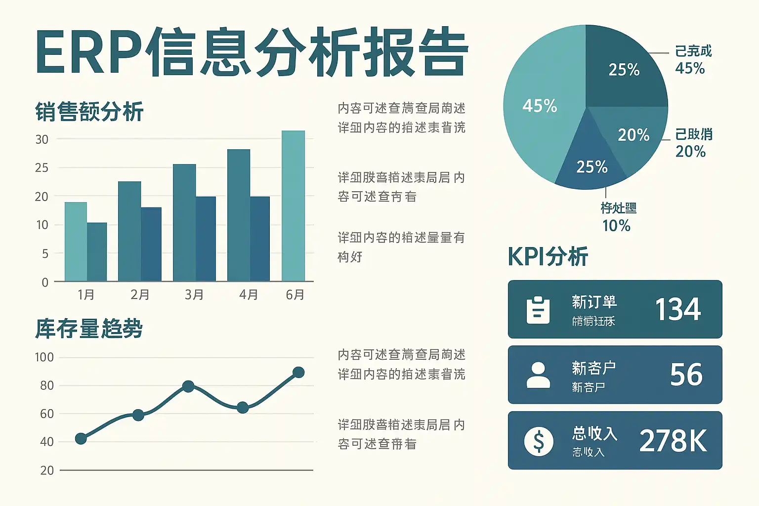 企业资源计划(Enterprise Resource Planning, ERP)是一体化的信息管理系统,将采购、生产、库存、销售、人力资源、财务等各核心业务模块集成到统一平台,通过流程自动化和实时数据共享,提高运营效率与决策能力。当前市面上主流ERP产品包括SAP ERP、Oracle ERP Cloud及国产代表如用友U8/NC和简道云ERP等。