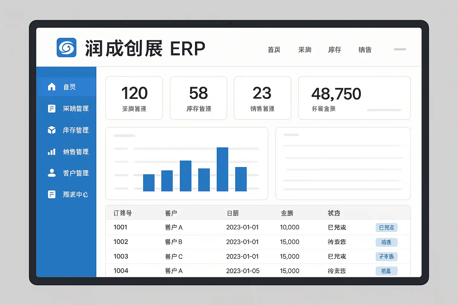 润成创展ERP系统主要涵盖以下核心功能:
