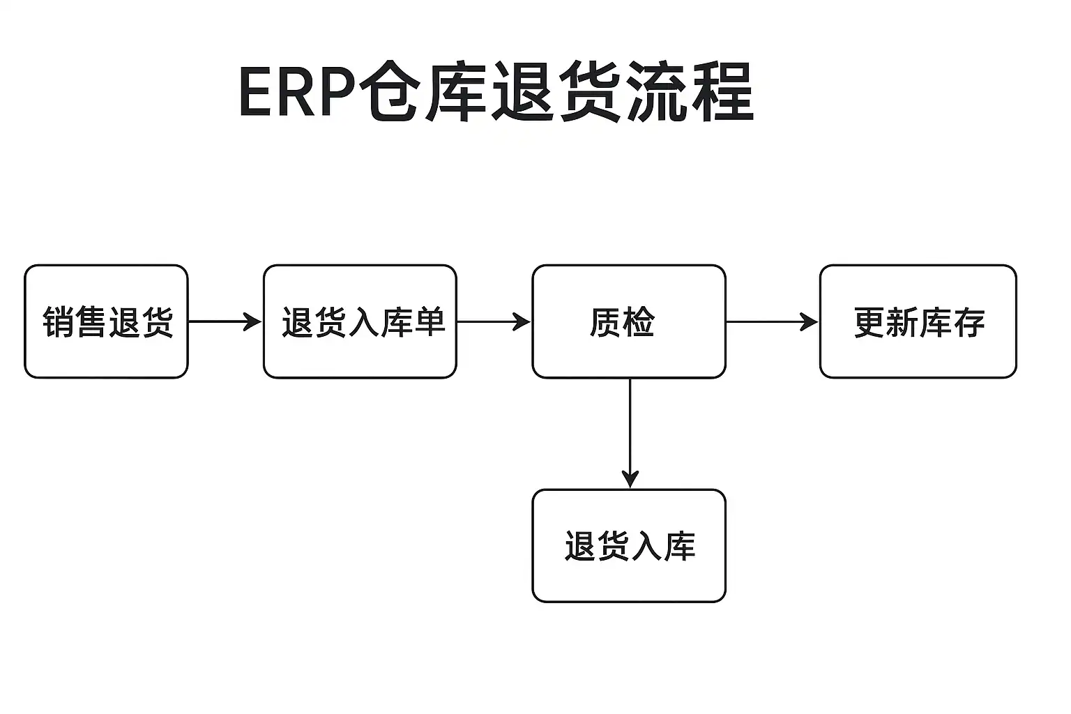 | 4. 系统登记入库 | 在ERP中登记“退回入库”,自动更新库存 | 仓管员 | 入库单管理 |