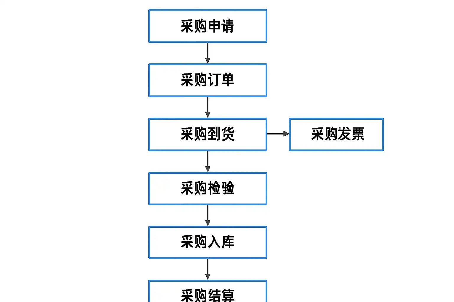 下面用文本方式描述典型的简道云ERP系统中“端到端”的标准采购管理业务流: