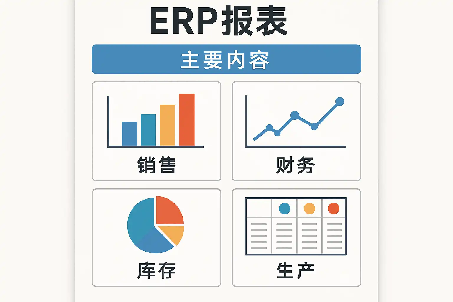 ERP报表的主要内容通常涵盖以下核心模块: