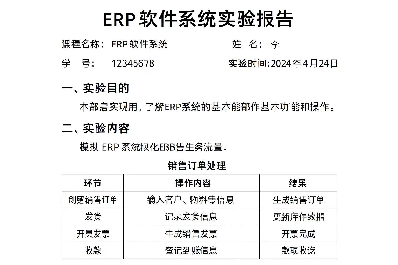 如何通过结构化布局提升ERP软件系统实验报告的可读性?