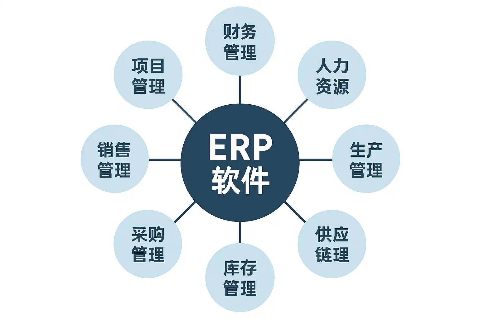 这些模块可根据不同行业或公司规模灵活增减定制,但上述内容构成了大多数标准ERP软件的基础框架。