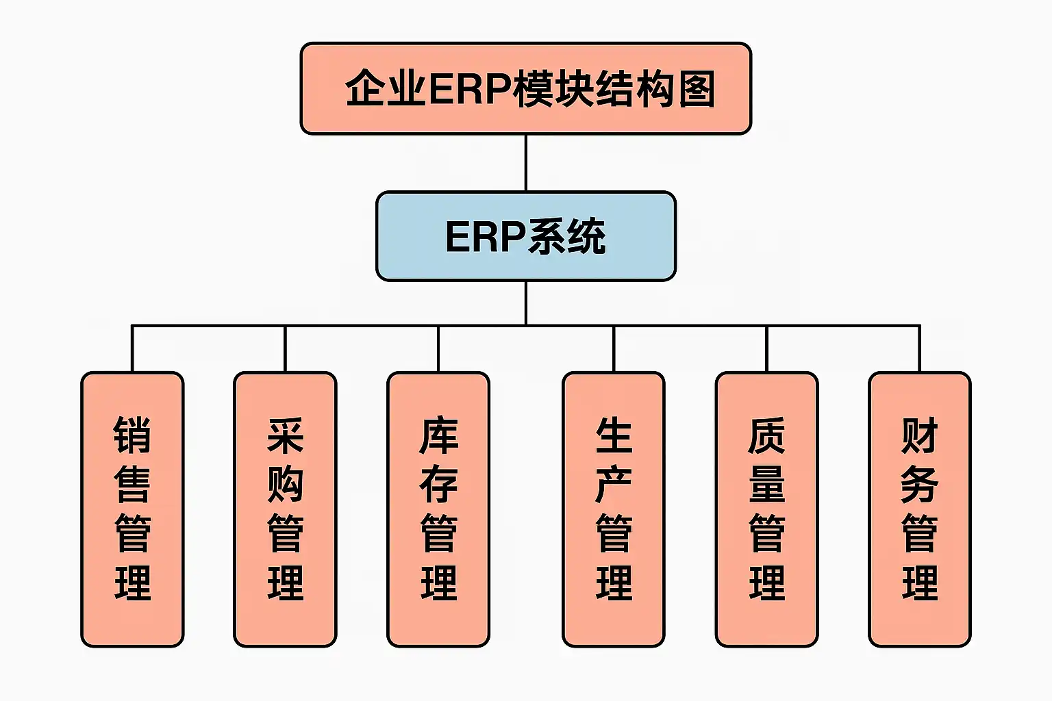 一个标准的企业ERP系统模块结构图通常包含以下核心部分: