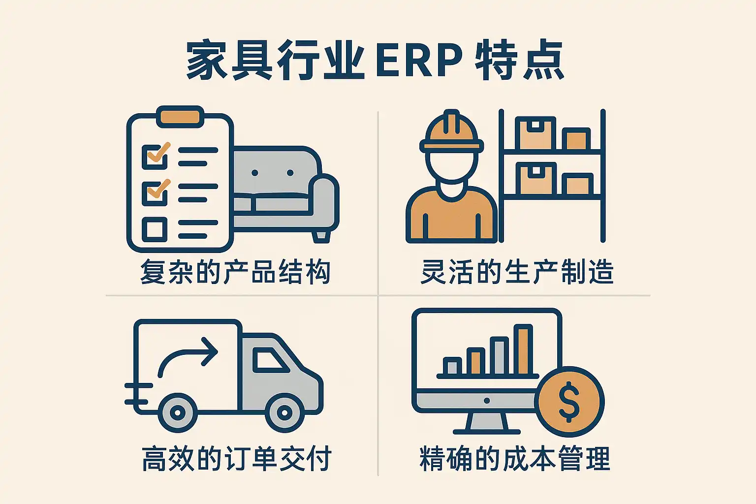 作为家具制造企业的管理者,我常常困惑于普通ERP系统是否能够满足我们行业的特殊需求,比如定制化生产和库存管理,哪些功能是家具行业ERP系统独有的?