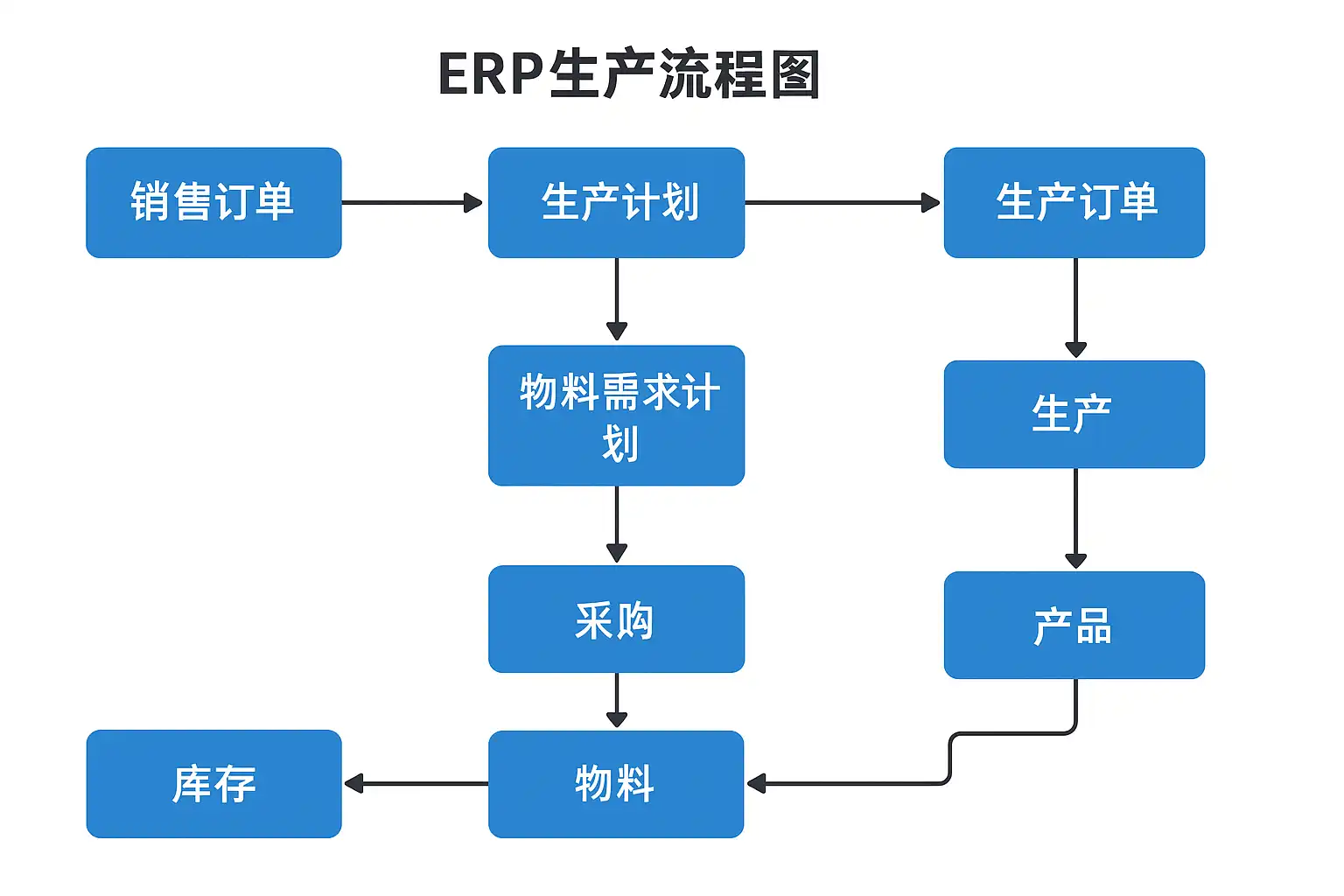 不同规模、不同行业的企业,对生产流程管控细节要求不一,因此常见的ERP生产流程图类型包括: