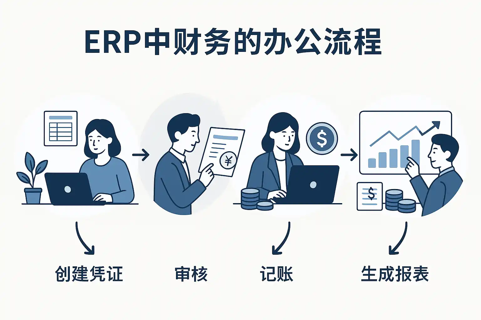 ERP(Enterprise Resource Planning,企业资源计划)中的财务办公流程,是指利用信息化手段,将企业各项财务活动(如会计核算、付款审核、成本计算等)规范纳入统一平台,实现自动化与标准化操作。其核心价值在于整合分散的数据流和业务流,提高透明度,优化决策支持。