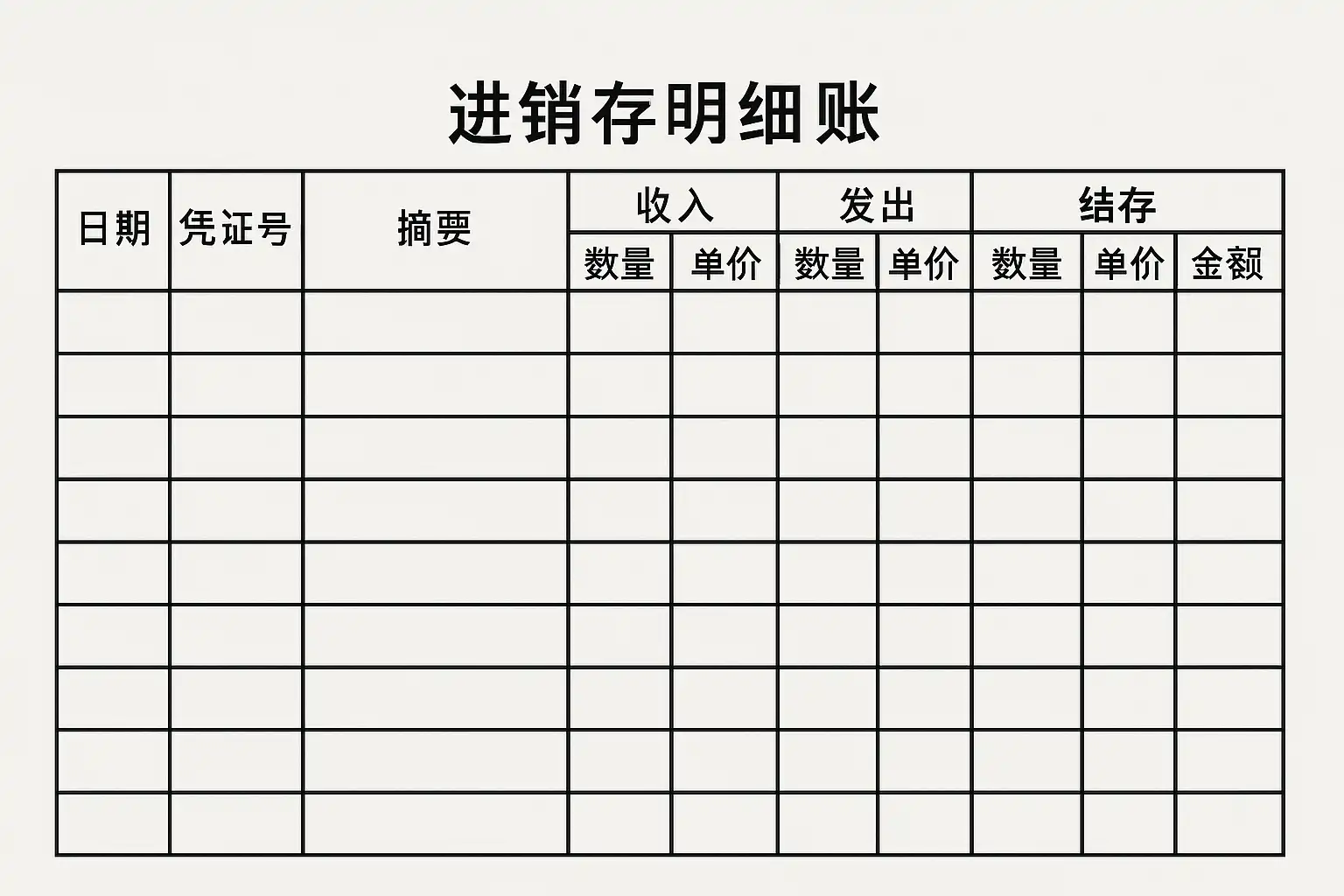 标准化的进销存明细账通常包含以下字段: