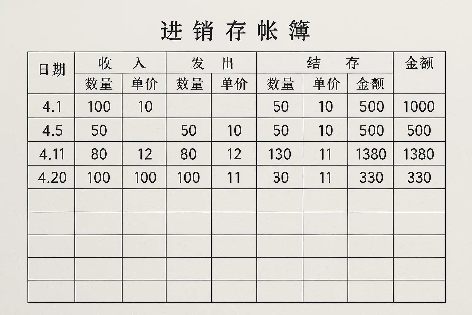 库存数量与金额对应的填写通常采用“加权平均法”或“先进先出法(FIFO)”: