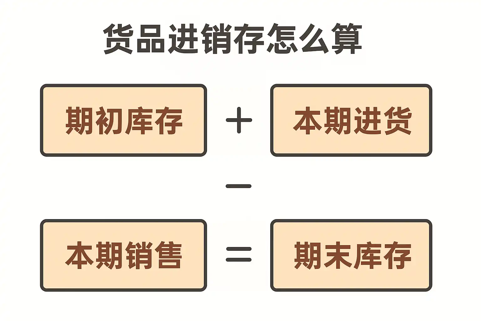 - 计算公式 无论是手工还是信息系统管理,基础的货品进销存公式如下:
